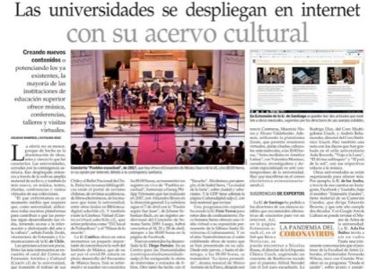 El Diario El Mercurio destacó la creación de nuevos contenidos o la promoción de los ya existentes, por parte de la mayoría de las instituciones de educación superior que ofrecen conferencias, talleres y visitas virtuales.