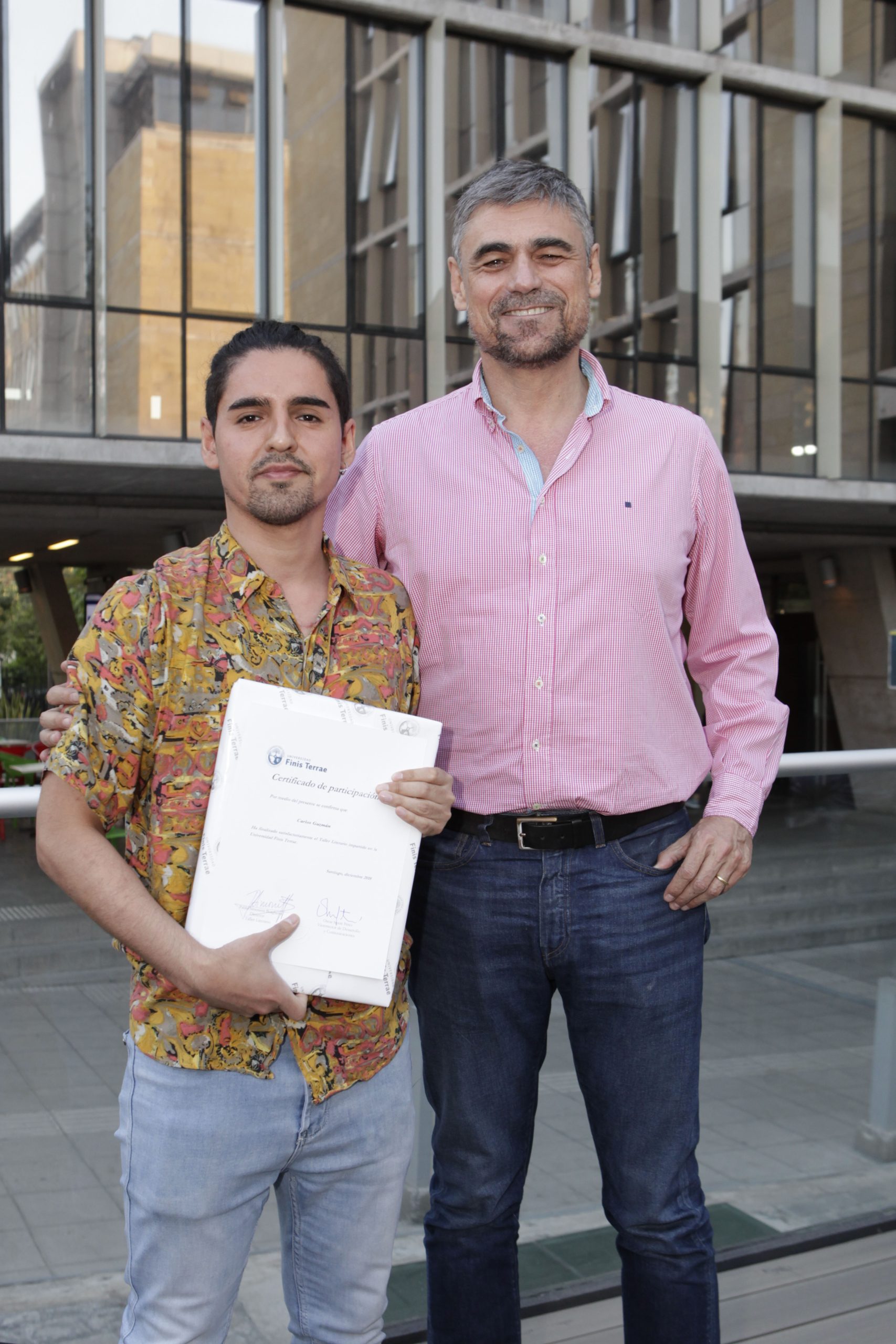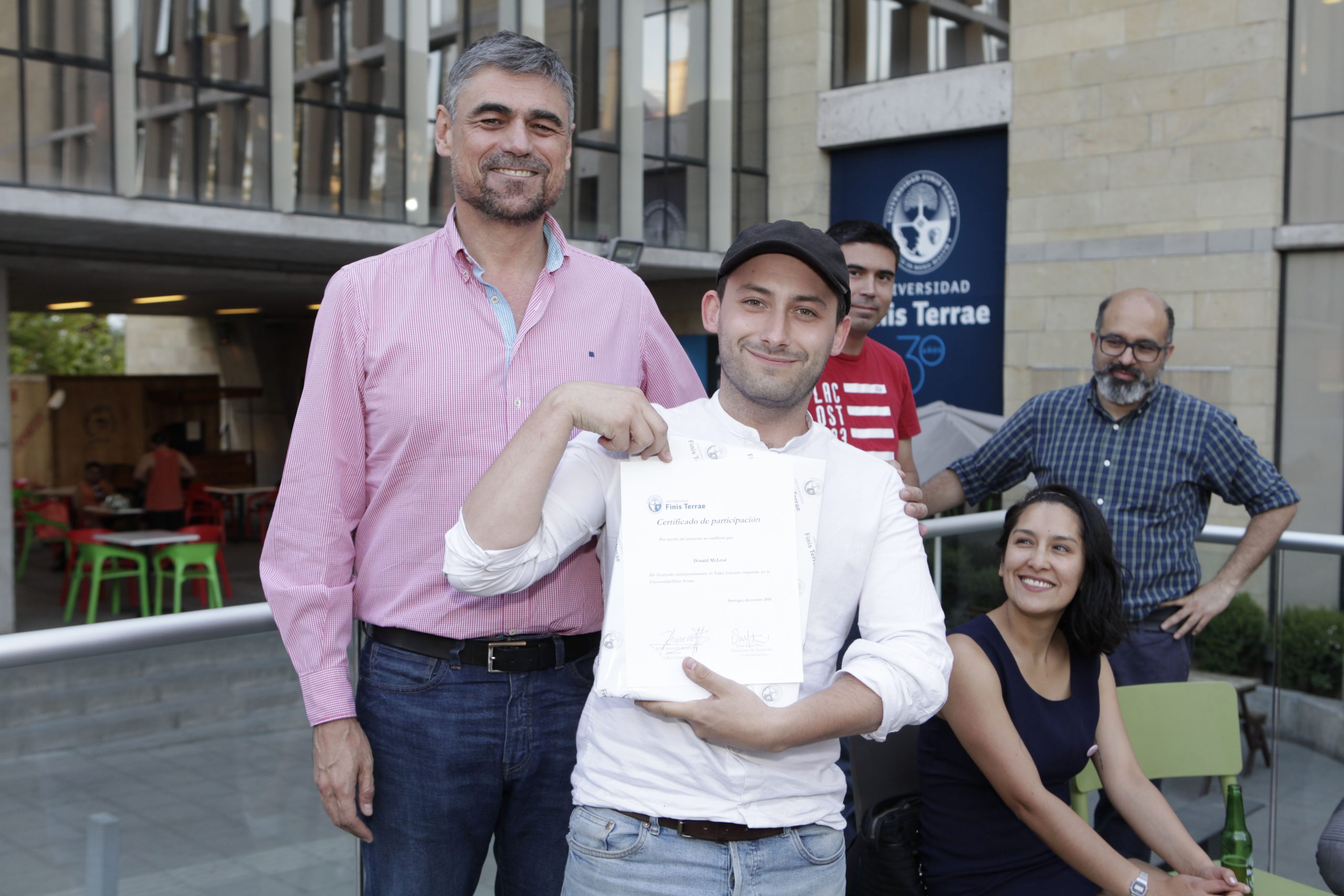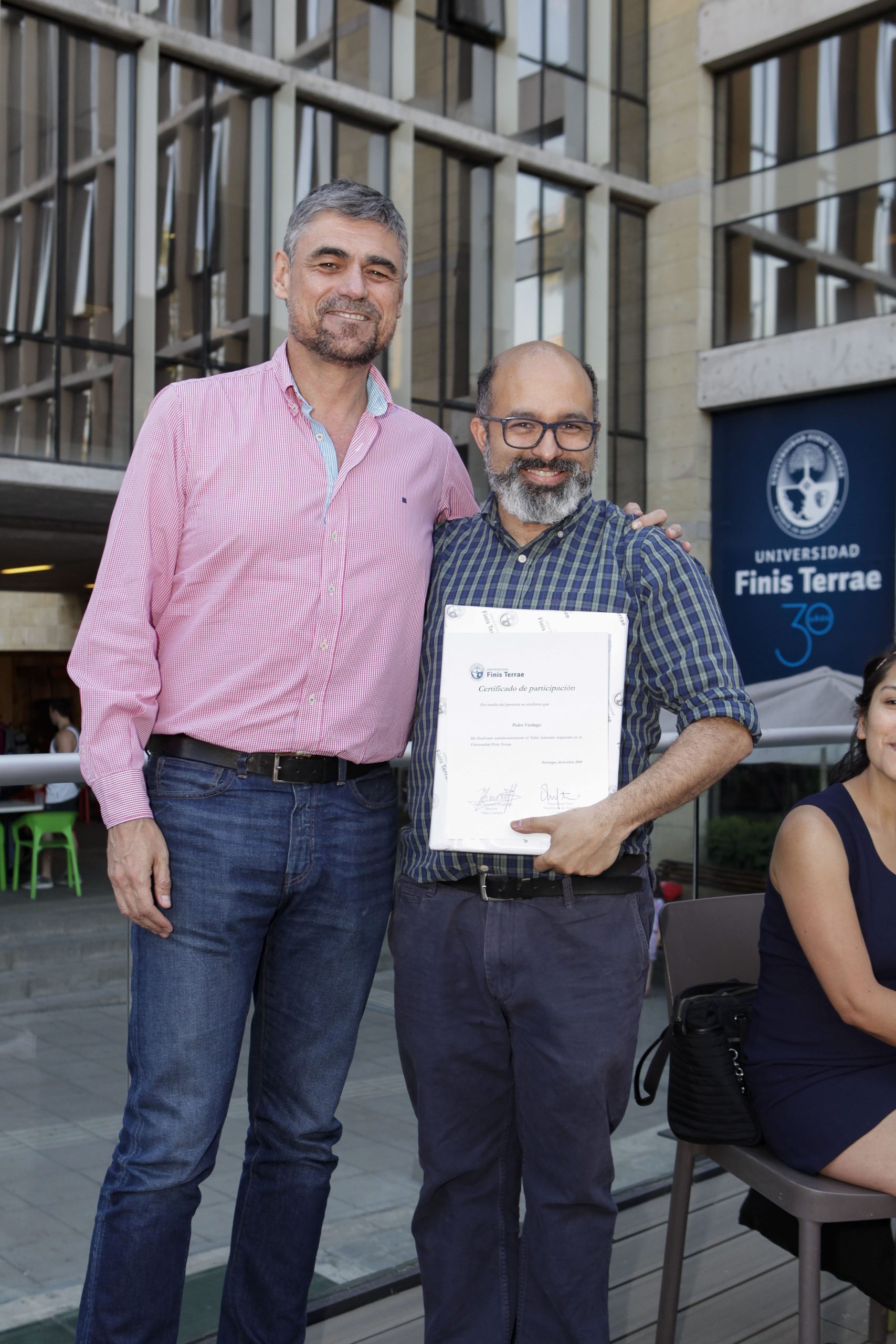 Pablo Simonetti entrega el certificado de participación 2018 a Cristián Cristino.