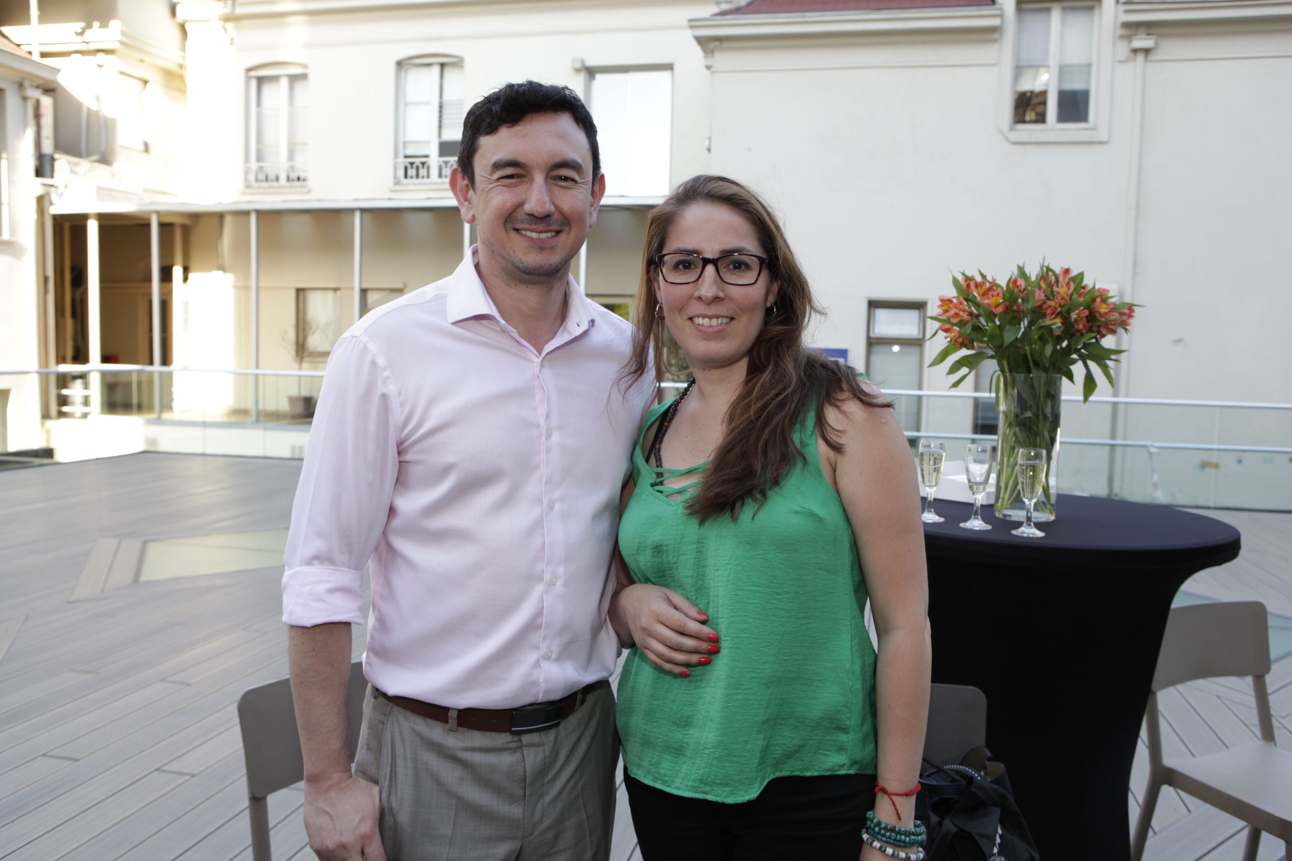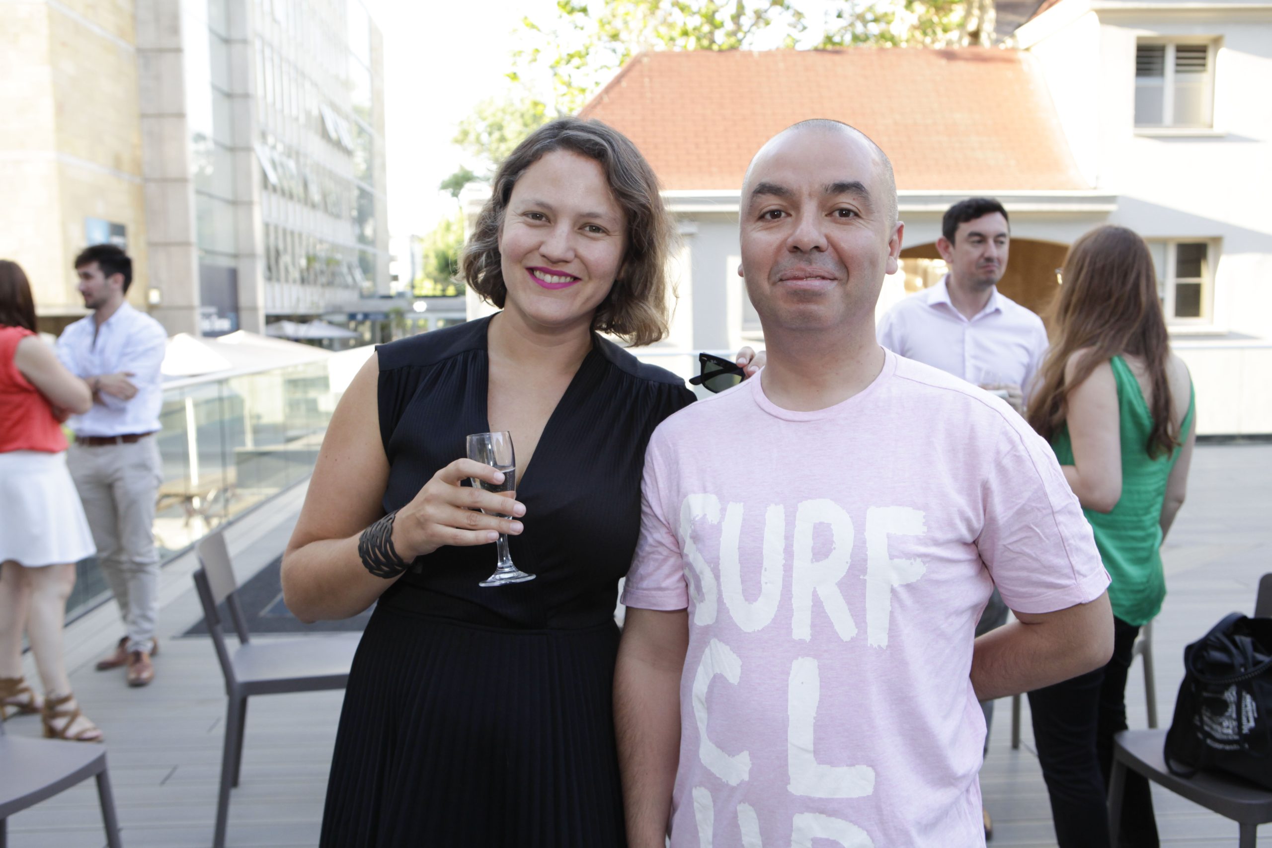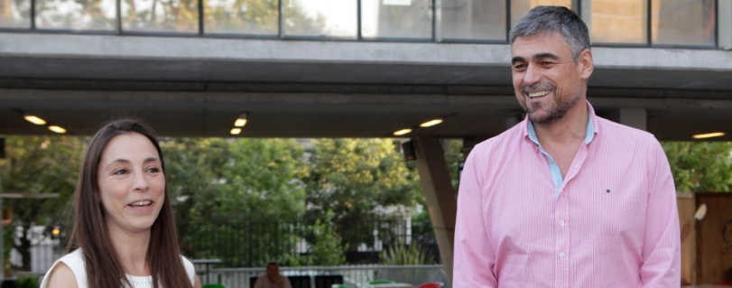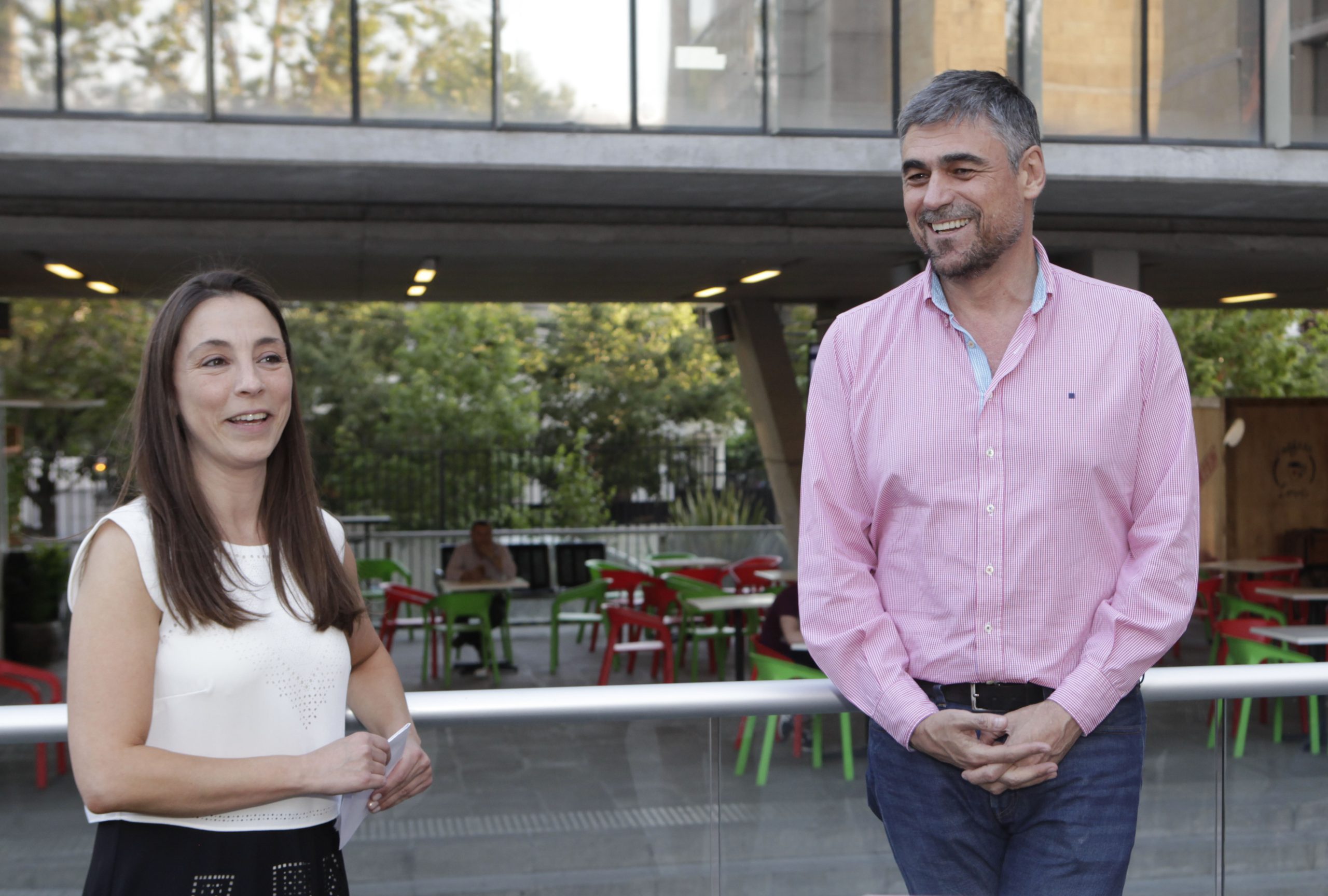 Lorena Burgueño, directora de Desarrollo y Relaciones Institucionales, y Pablo Simonetti, saludando a los asistentes.