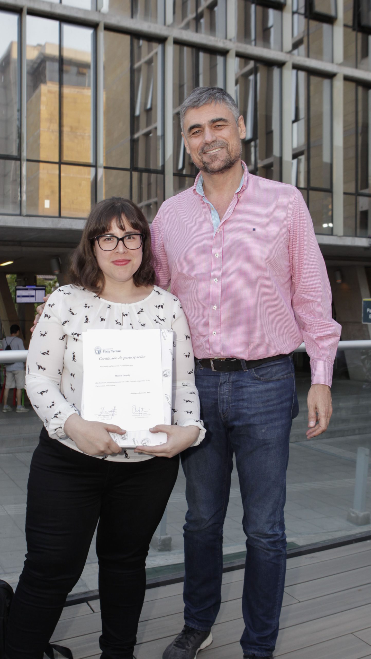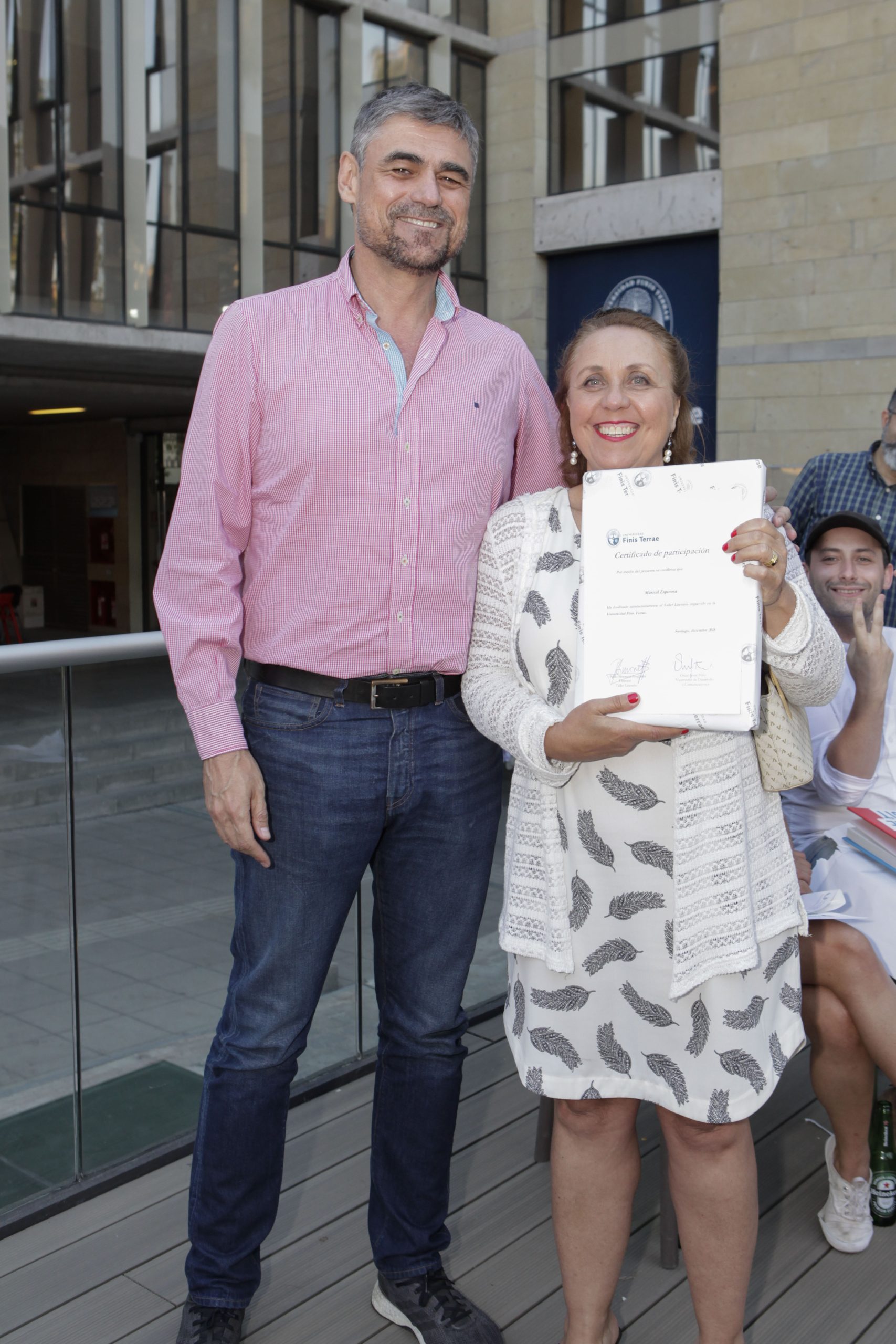 Pablo Simonetti entrega el certificado de participación 2018 a Mónica Drouilly.