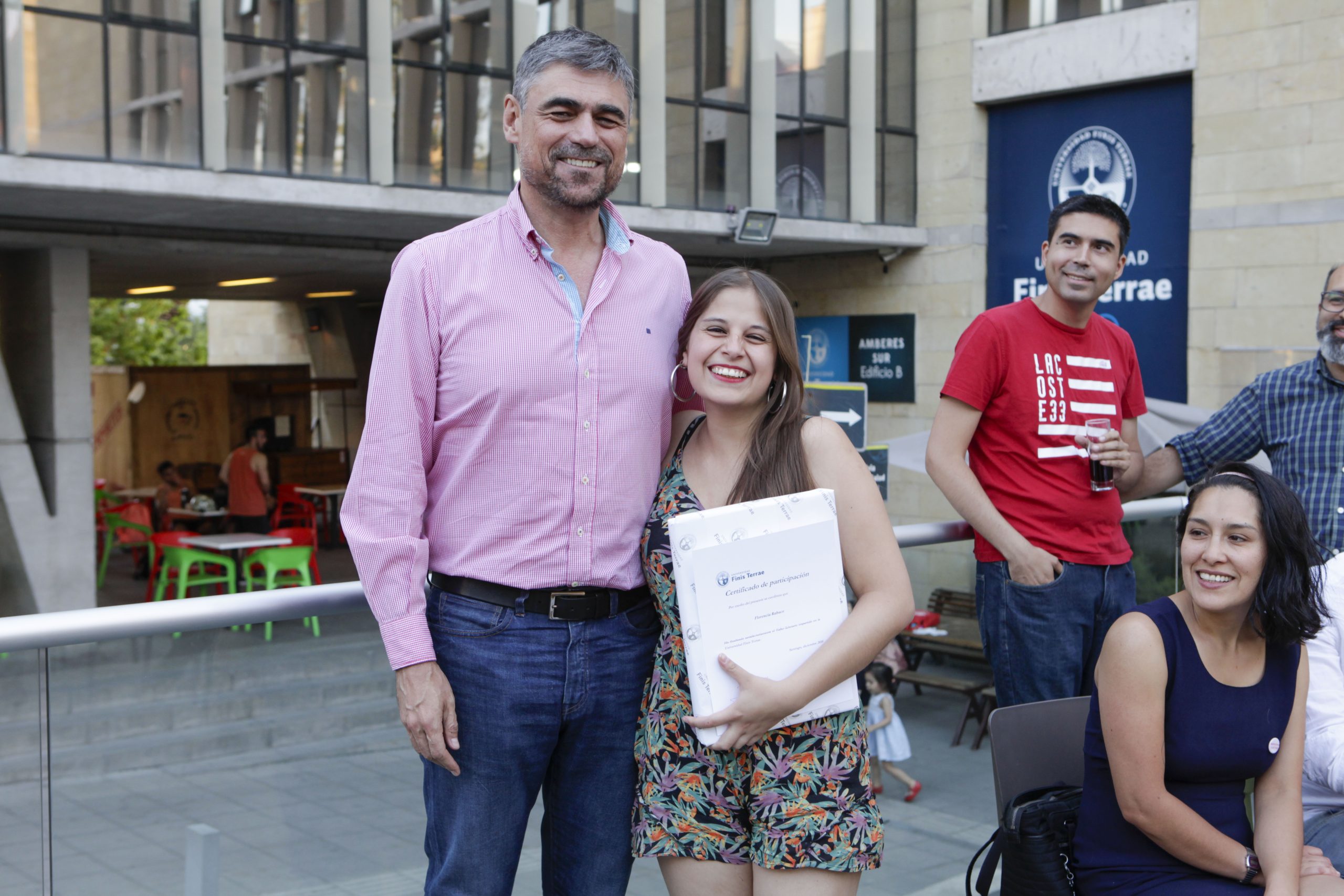Pablo Simonetti entrega el certificado de participación 2018 a Florencia Rabuco.