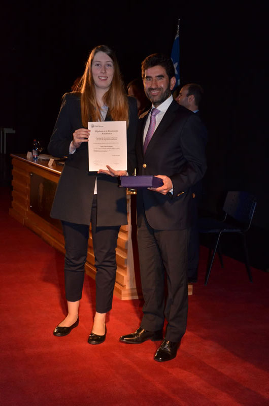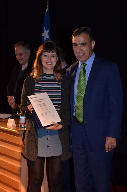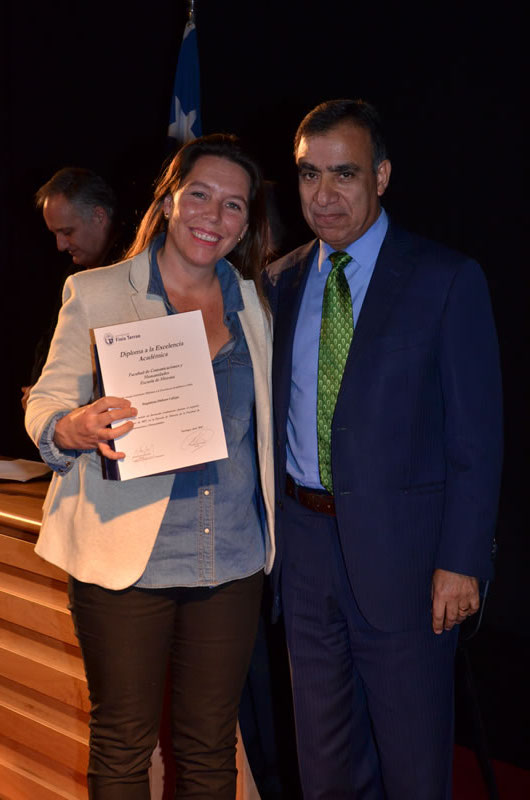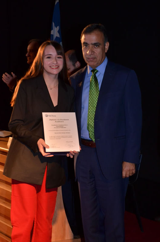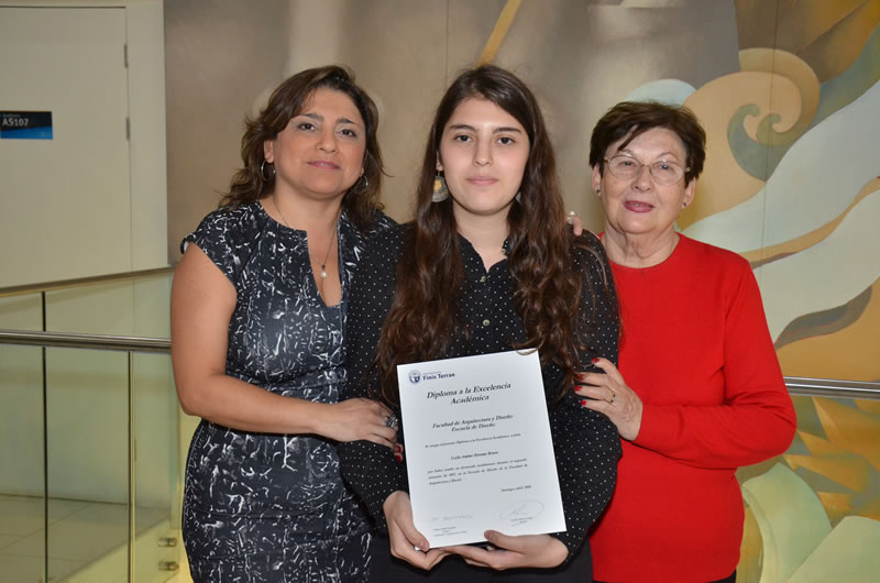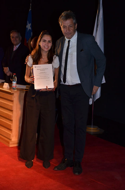 En esta oportunidad, el reconocimiento a la Excelencia Académica recayó sobre: Bárbara Silvia Navarro Moreno y Belén Salvatierra Meza de la Escuela de Arquitectura; Luis Andrés Cortés Burdiles y Leyla Amine Herane Bravo, de la Escuela de Diseño; Iván Armando Briceño Baez y Kevin Cortes Cruz de la Escuela de Comunicaciones; Magdalena Dittborn Callejas y Luis Enrique Oyanedel Nuñez, de la Escuela de Historia; Florencia Correa Anguita y Alejandra Menichetti Caballero, de la Escuela de Literatura; Florencia Contreras Ahumada y Lyn- Li To Figueroa, de la Escuela de Teatro; Macarena Belén Manríquez Manríquez y Michelle Niszow Massera, de la Escuela de Publicidad; Constanza Andrea Aqueveque Ascuí, Carlos Vicente Baeriswyl Rada y Josefina Ibañez Aldunate, de la Escuela de Artes Visuales; Antonella Avendaño Godoy, Juan Basoalto Díaz, Demetrio Infante Cortés y Camila Wainer Bustamante, de la Escuela de Ingeniería Comercial; Paula Beatriz Pérez Rebolledo y Stephanie Jazmín Yáñez Inostroza, de la Escuela de Auditoría; Cuper Higueras Arteaga y María del Carmen Shedid Aguilar, de la Escuela de Dirección y Gestión de Artes Culinarias; Pía Constanza Betancourt Prado e Ignacia Fernanda Mendiola Fuenzalida, de la Escuela de Ingeniería en Información y Control de Gestión; Johanna Silva Nuñez de la Escuela de Ingeniería Civil; Felipe Gutiérrez Marín y Carlos Javier Marambio Reyes, de la Escuela de Ingeniería Civil Industrial; Ignacio Andrés Muñoz Villalobos y Clemente Serrano Sutil, de la Escuela de Ingeniería Civil en Informática y Telecomunicaciones; Simone Chavez Cabrera y Rosario Paz Rivera Beltrán, de la Escuela de Medicina; Romina Angulo Pizarro y Paloma Bastidas Arratia, de la Escuela de Enfermería; Luna Inés Armijo Aguilera y Javiera Quiroga Álvarez, de la Escuela Nutrición y Dietética; Marcelo Del Campo Álvarez y Carolina Tadic Pulgar, de la Escuela de Kinesiología; Yocelin Andrea Galaz Vives y Rosa Angélica Lienlaff Díaz, de la Escuela de Odontología.