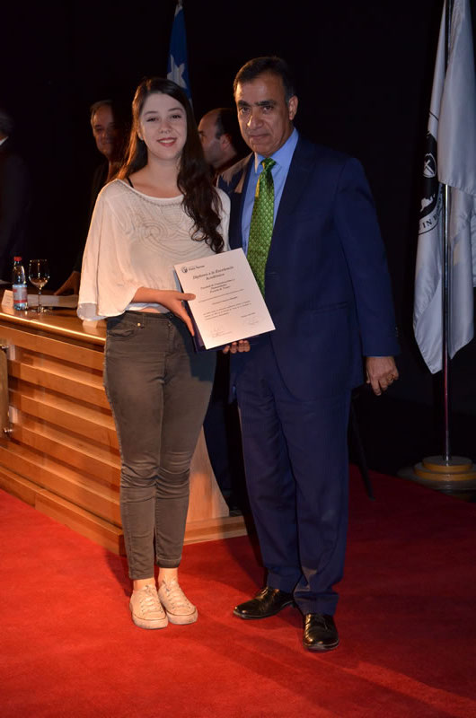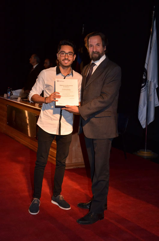 Posterior a las palabras del vicerrector Académico, los decanos de cada facultad hicieron entrega de diplomas y galvanos a 57 estudiantes del establecimiento, con el fin de reconocer en ellos el mejor resultado de nuestros esfuerzos.