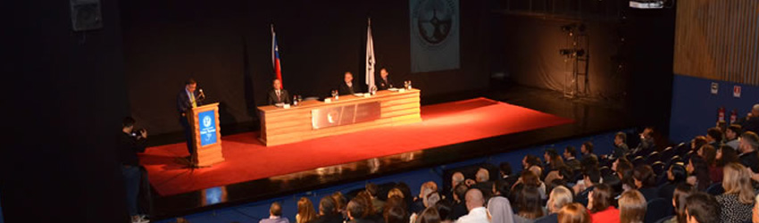 La ceremonia Premio a la Excelencia Académica, presidida por el vicerrector Académico Roberto Vega M., el vicerrector de Desarrollo y Comunicaciones, Oscar Sastré P., el vicerrector Económico Bruno Krumenaker S., y el secretario General Álvaro Ferrer.