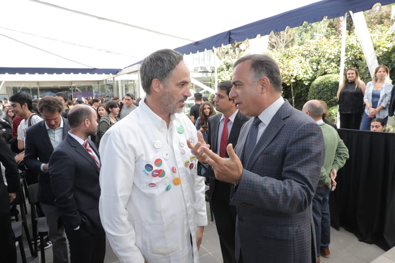En la bienvenida, los estudiantes tuvieron la oportunidad de conocer la experiencia de Sebastián Errazuriz, egresado de la Facultad de Derecho, promoción 2002, de la U. Finis Terrae y cofundador de Un Techo para Chile, quien a través de sus palabras instó al nuevo alumnado a: “Perseguir la vocación y a no estar solo sentados en la silla. Que luchen por sus sueños y que se hagan cargo”.