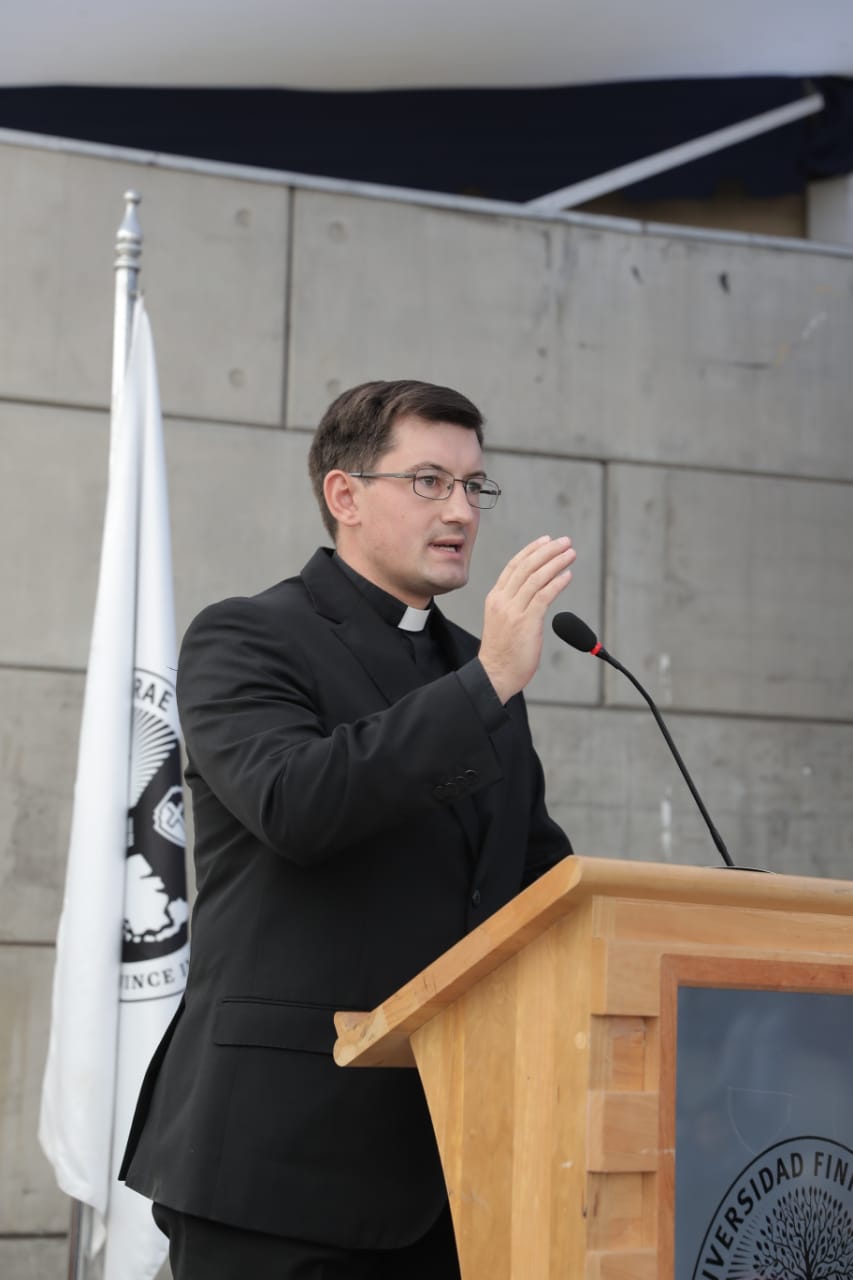 Posteriormente, James Cleary, diácono y miembro de los Legionarios de Cristo, entregó la bendición a todos los presentes e invitó a los estudiantes a ser parte activa de la Universidad como gestores de su propio futuro.