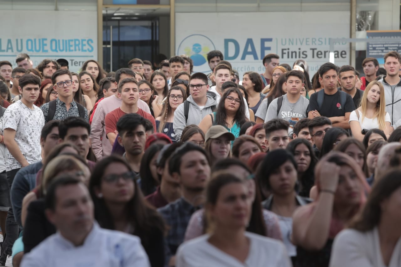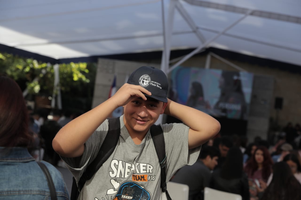 El Patio Amberes norte fue el lugar para reunir a los 1.709 nuevos estudiantes que se incorporan este año a las 24 carreras de pregrado que ofrece la Universidad Finis Terrae. Una Bienvenida Integral Universitaria, con el fin de que los alumnos de primer año se familiaricen con las autoridades e instalaciones de la Universidad.