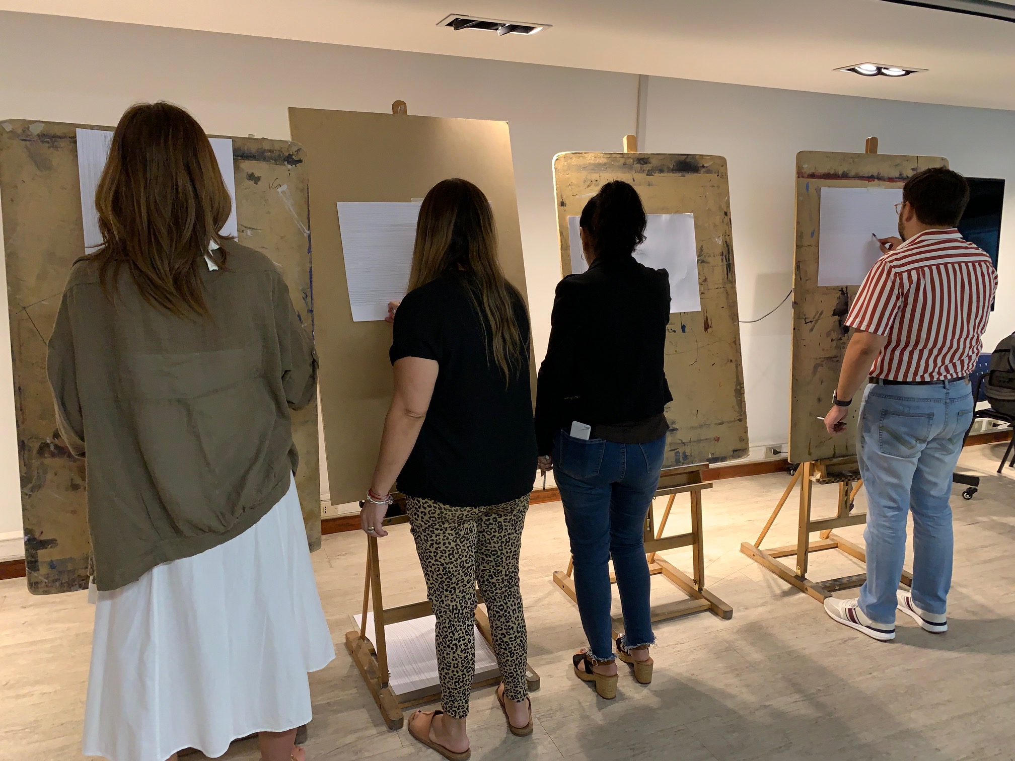 Entre las actividades más disfrutadas por los académicos participantes de este año se encuentra el taller de autoretratos. En esta experiencia, pudieron plasmar cómo se perciben a sí mismos y llevarlo de la mente al papel.