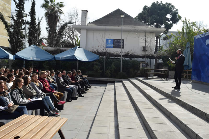 En la ceremonia, un grupo representativo de los estudiantes extranjeros agradeció a la Universidad y a quienes los han recibido por la calidez, la hospitalidad y la cercanía que han tenido con ellos desde que llegaron a Chile. Asimismo, representantes de cada escuela les dieron la bienvenida por carrera a los alumnos.