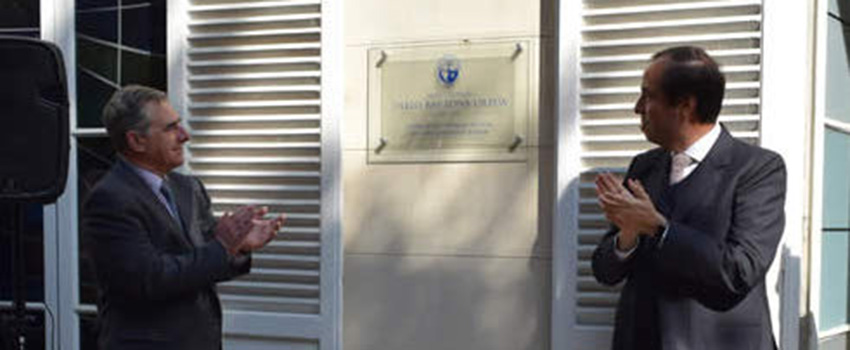 Tras sus palabras, descubrió junto al hijo del ex rector Pablo Baraona, la placa que da nombre a la tradicional sala de reuniones ubicada en en la Casa Vial, Av. Pedro de Valdivia 1509, Providencia, desde hoy, Sala Pablo Baraona Urzúa.
