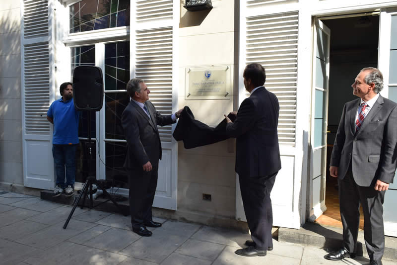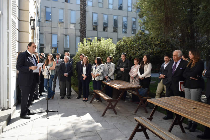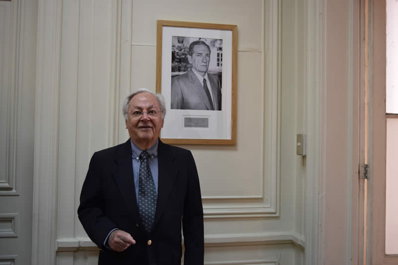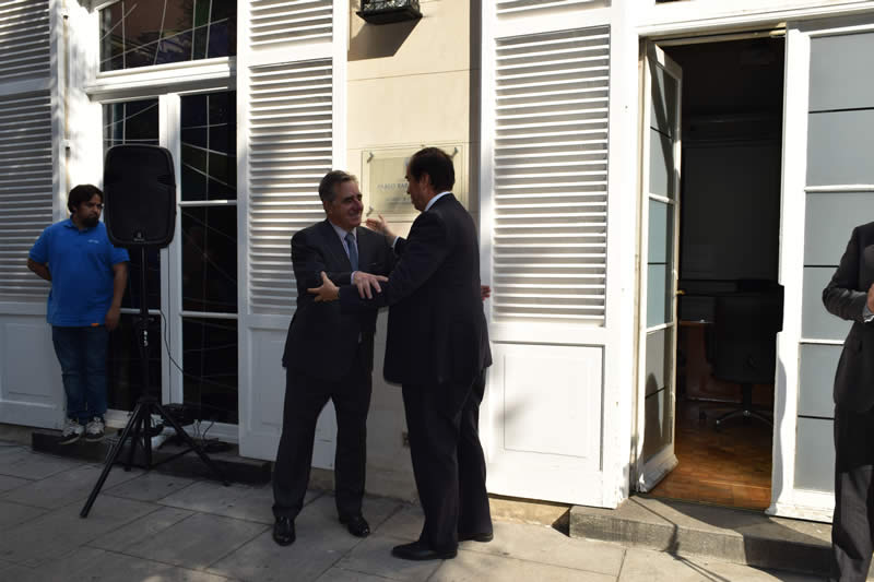 Tras sus palabras, descubrió junto al hijo del ex rector Pablo Baraona, la placa que da nombre a la tradicional sala de reuniones ubicada en en la Casa Vial, Av. Pedro de Valdivia 1509, Providencia, desde hoy, Sala Pablo Baraona Urzúa.