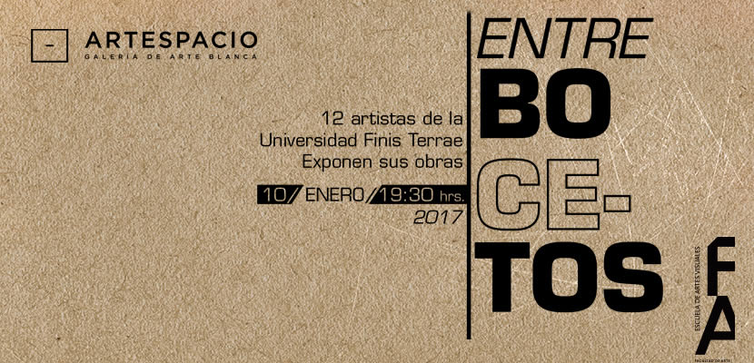 Una nueva propuesta presentará la Universidad Finis Terrae a Galería Artespacio; esta vez compuesta por docentes y egresados de la casa de estudios, incluyendo al decano de la Facultad de Arte, Enrique Zamudio, quienes exhibirán parte de sus obras y sus bocetos desde el 10 de enero al 1 de marzo de 2017.