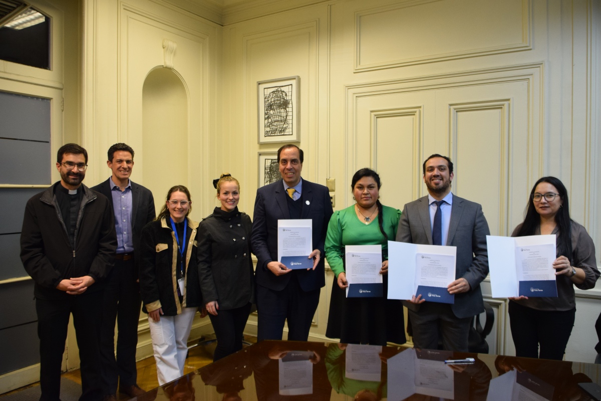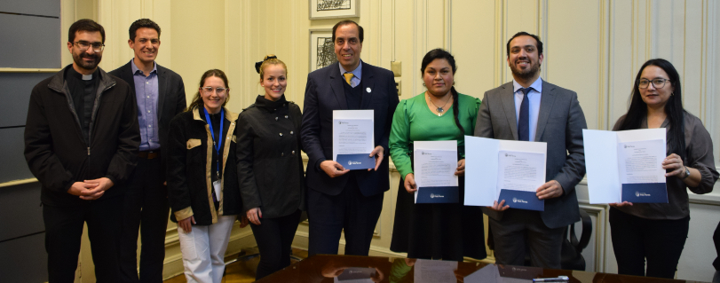 La oficialización del convenio se realizó en una cita desarrollada en Casa Central y donde nuestra Universidad estuvo representada, entre otros, por el rector Cristian Nazer; el vicerrector de Formación Integral, José Mateos, y la directora de Pastoral, Angélica Herrera. Por su parte, las autoridades municipales presentes estuvieron encabezadas por el alcalde, Carlos Gatica, junto a las concejalas Yohana Hernández y Yorka Cheuquian.