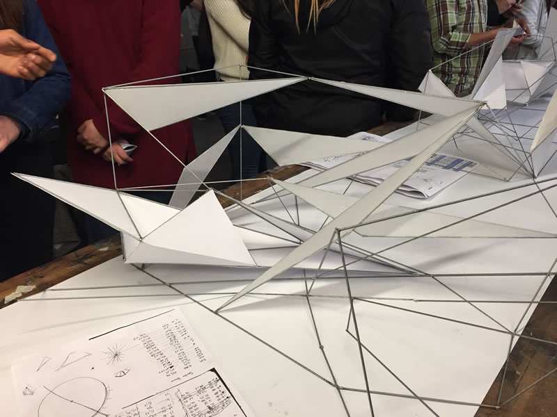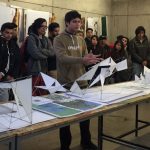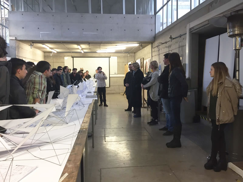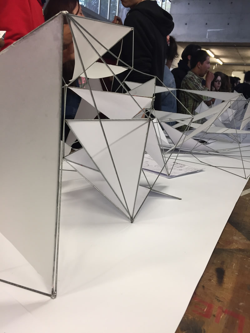 Los alumnos de Taller I y II trabajaron en grupos y estudiaron 10 áreas de la Patagonia, concluyendo con el desarrollo de estructuras de alambre y papel, que reflejaban el viento y asoleamiento en cada zona.