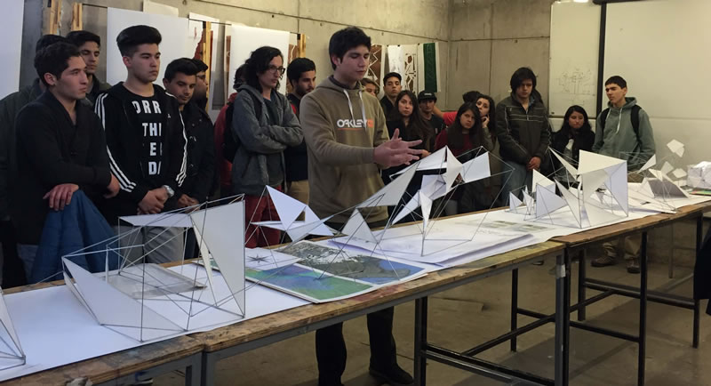 Para esta actividad –coordinada por la docente Macarena Urzúa- fueron invitados la paisajista Teresa Moller y el arquitecto Carlos Bustamante, quienes dieron inicio al workshop con una conferencia en que se refirieron a los fenómenos de estudio y su implicancia en estas disciplinas y participaron de la corrección final de las entregas.